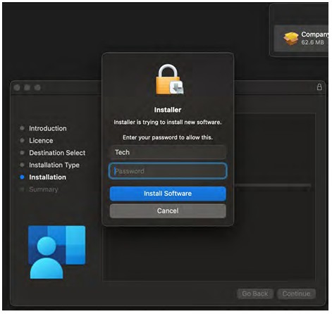 Before the app can install, you may have to give permission by entering the administrator username and password and selecting Install Software.