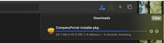 - You will see a program begin to download on your browser named CompanyPortal-Installer. Once the download is finished, double click the downloaded .pkg file.