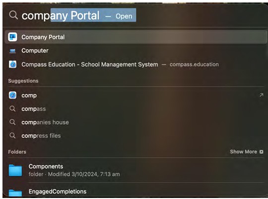 The following instructions show how to install Company Portal to access trusted resources at maribyrnong College on a MacOS Device.