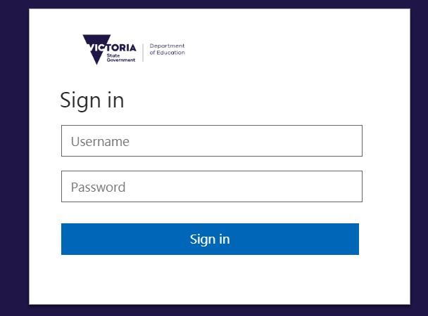 Note: You must use your Department of Education email address and password to sign in. The email address will be in the format “username@schools.vic.edu.au”