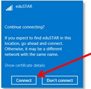 - You might be asked to select Continue if you trust the network or a certificate to connect.